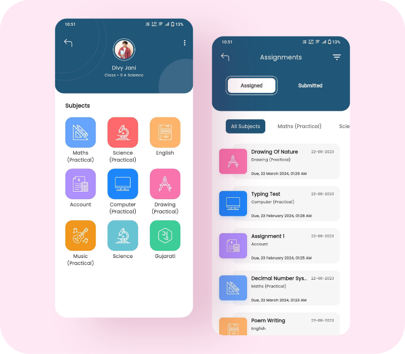 Access subject-specific lessons and assignments, track submissions, and stay organized all in one place.