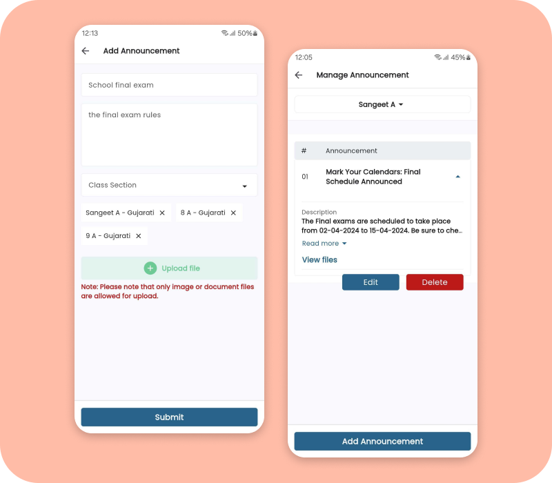 Users can send important announcements directly from our application, streamlining communication and ensuring timely dissemination of crucial information.