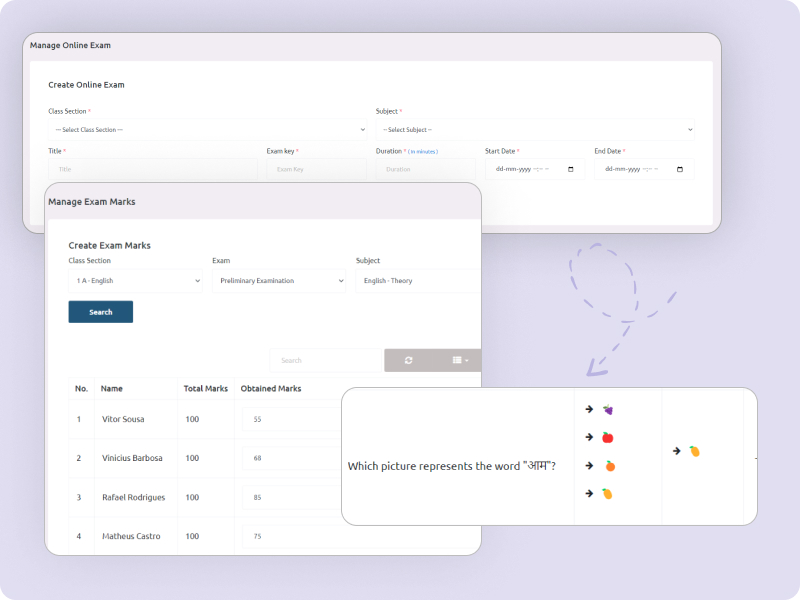 Simplify exam scheduling and management with our online and offline sections. Easily schedule exams and publish results with ease and accuracy.